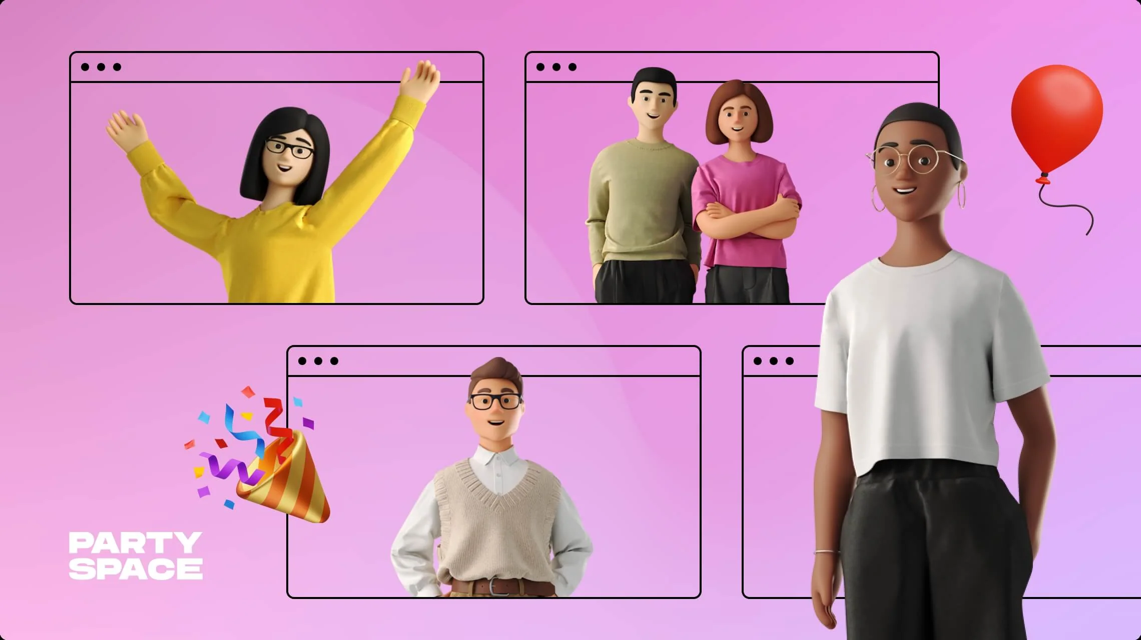 Imagine a computer game where you and your friends coexist in the same virtual world, playing as in-game characters. Party.Space offers you a similar gaming experience, only in a more businesslike way.