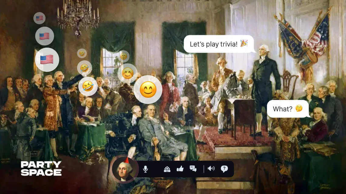State capital quizzes test your metaverse party attendees’ knowledge of capital cities. You can organize it remotely for Independence Day by gathering attendees in a metaverse venue and having a host who will ask the questions. Participants can just raise their hands to answer, or better, write the answer in mutual chat. Whoever answers first gets the points.