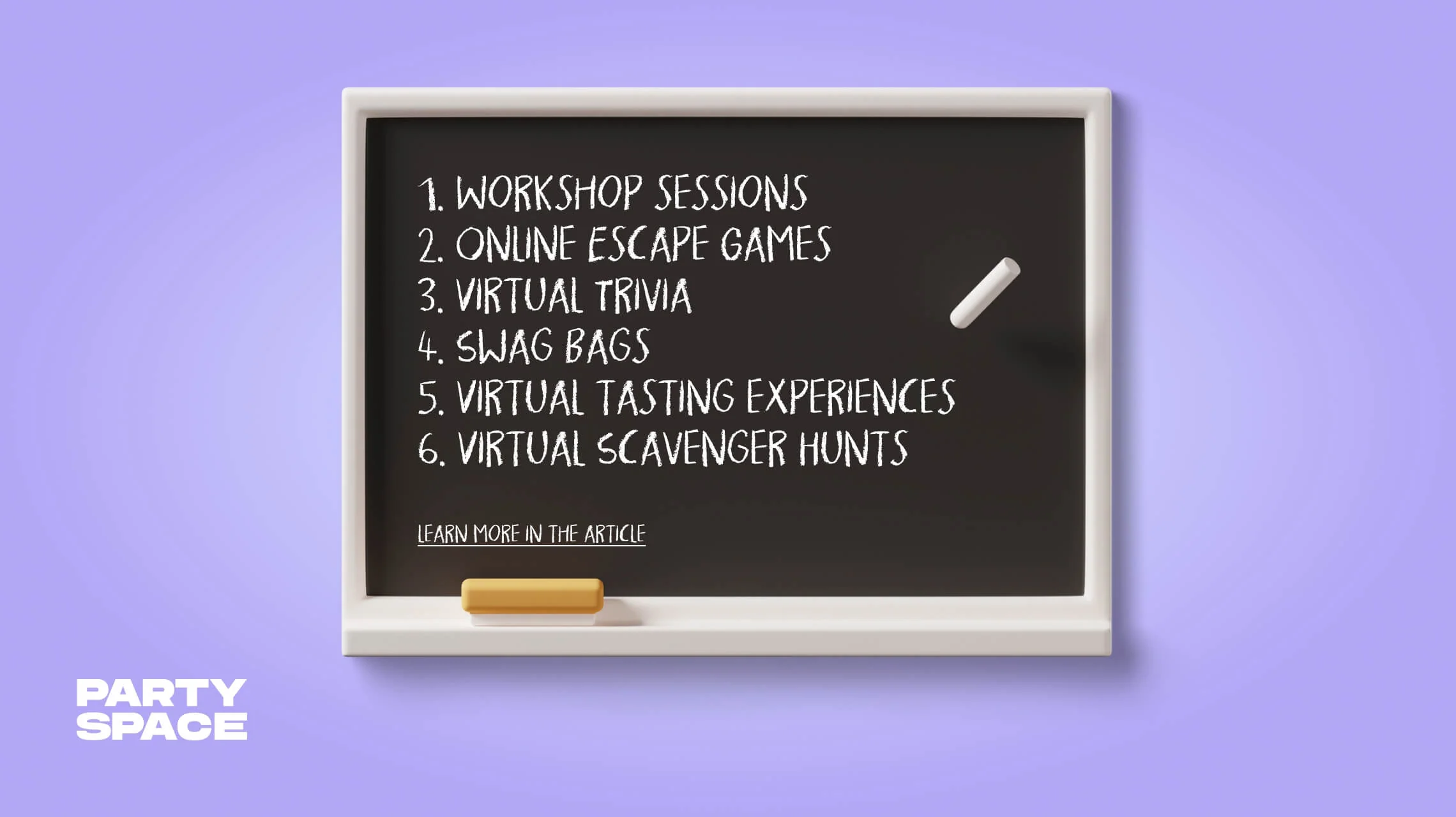 These are virtual team-building activities organized in dedicated virtual party rooms. The theme, content, and duration may vary. One of the most important things to consider is the choice of virtual party space since Zoom, Google Meets, and similar business calls do not really count as virtual retreats (even if you make them super fun).